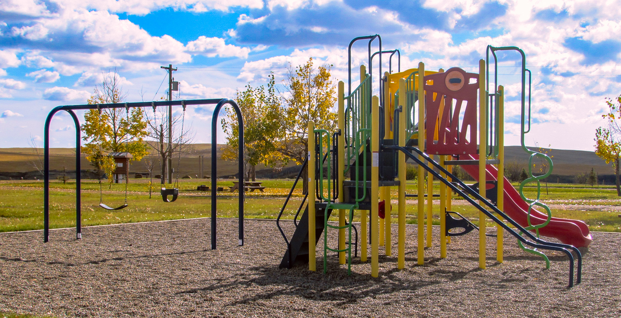 Situated directly south of Michichi on Secondary Highway 849, Michichi Dam Recreation Area is a quiet getaway amidst the rolling grass hills of the prairie. Conveniently located 25 km north of Drumheller, it is an excellent spot to camp and still be close enough to go visit the Royal Tyrrell Museum of Paleontology and other tourist attractions in the area. There are eighteen formal campsites complete with firepits and picnic tables. Eighteen sites are powered sites. As well, there are twenty overflow campsites and group camping areas and camp kitchen facilities. There are coin-operated shower facilities with handicap access. There are flush toilets available in the shower house. There is CSA-approved playground equipment. There is an RV water and sewer station available for your convenience. The campground is equipped with eight water hookups and no sewer hookups. There is potable water.